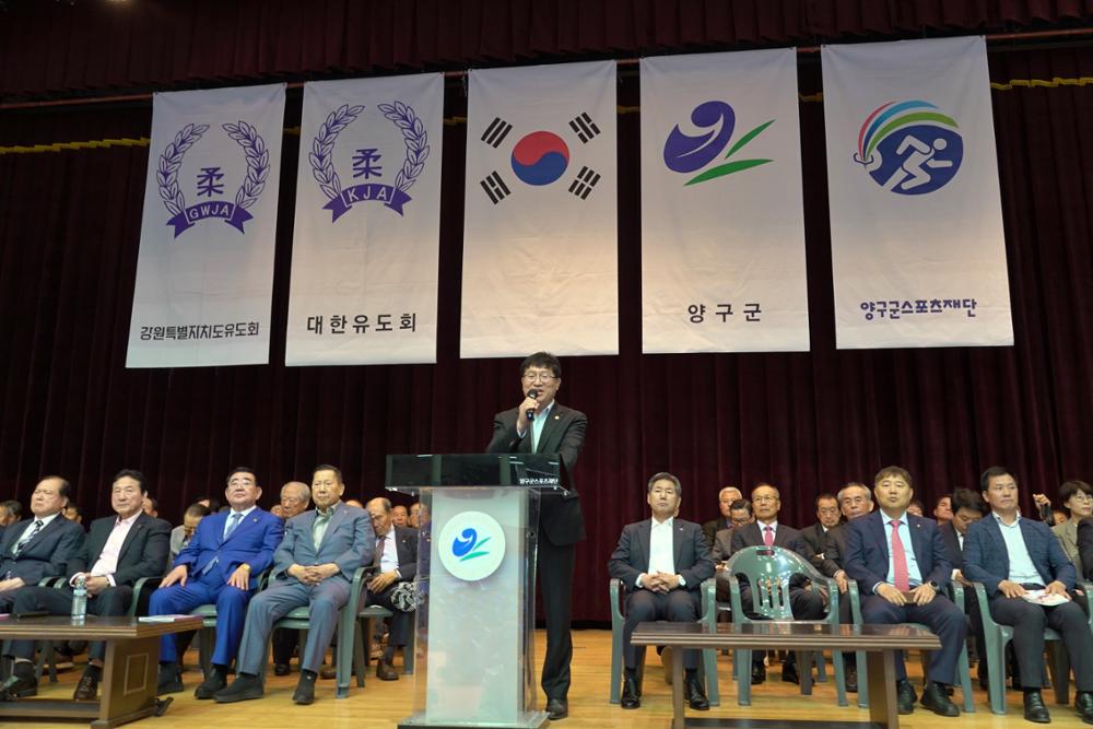 양구군의회 정창수 의장과 김정미, 김선묵, 김기철 의원이 7일 양구문화체육회관에서 열리는 2025 양구평화전국유도대회에 참여했다.