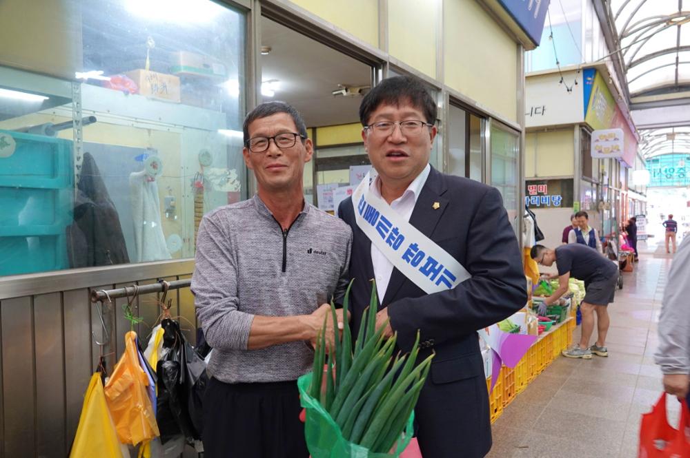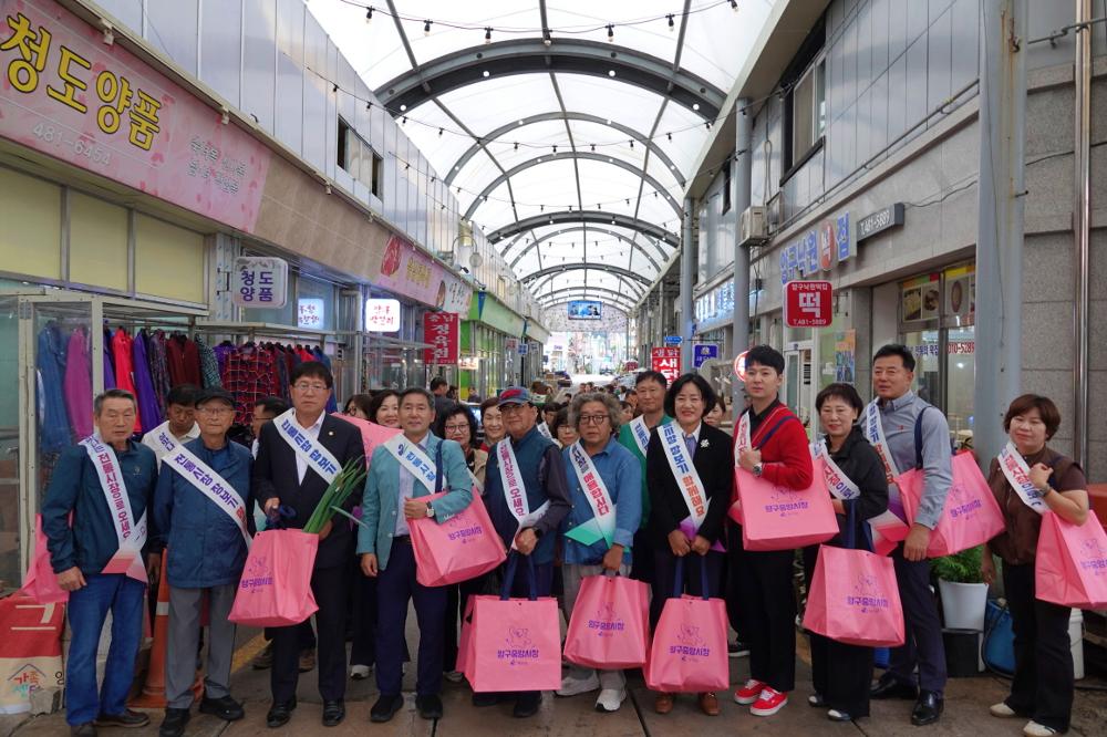 양구군의회 정창수 의장, 김정미 의원, 이상철 의원이 3일, 양구 전통시장에서 열린 2025 추석맞이 전통시장 장보기 행사에 참석했다.
