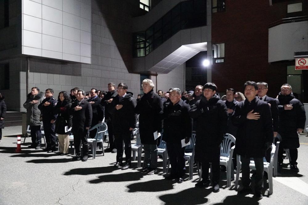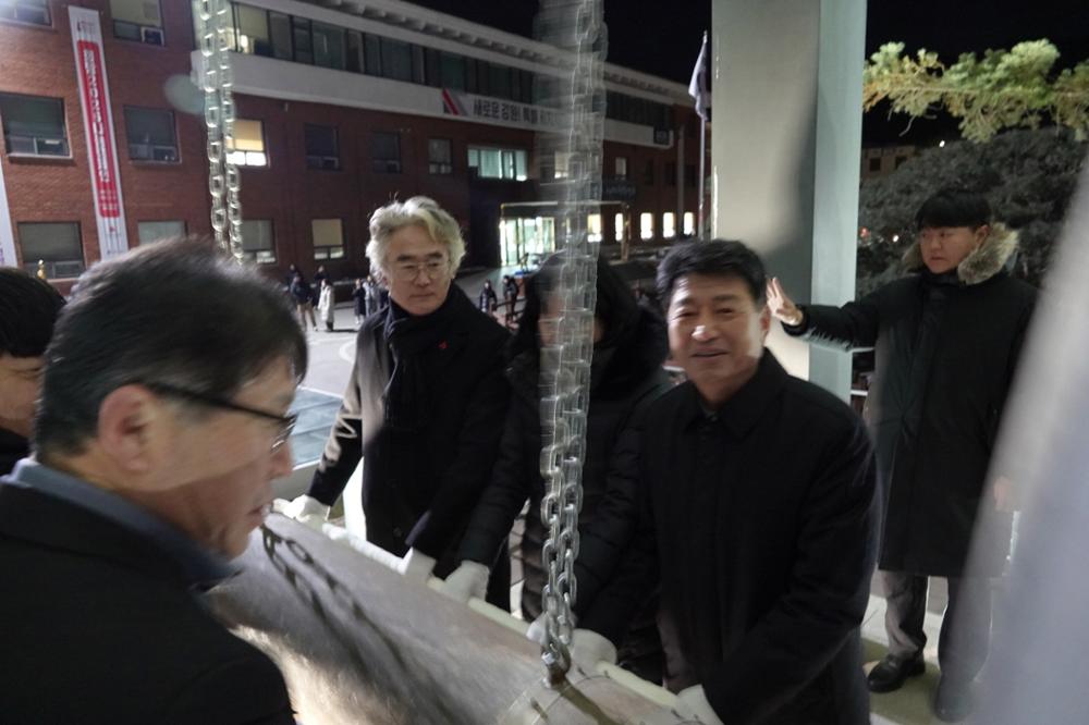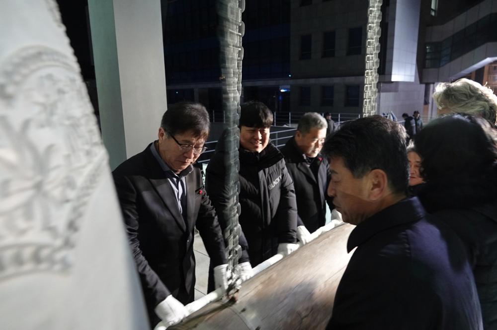 양구군의회 정창수 의장, 신철우 부의장, 조돈준, 김정미, 김선묵, 김기철 의원이 1일 희망의 종각에서 열린 희망의 종 타종식에 참석했다.