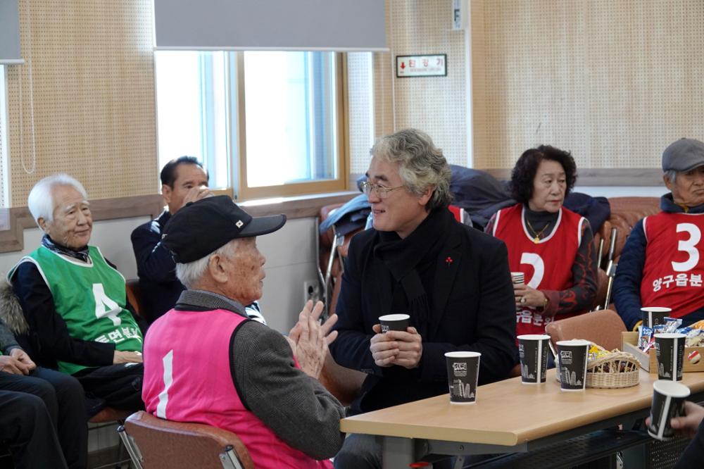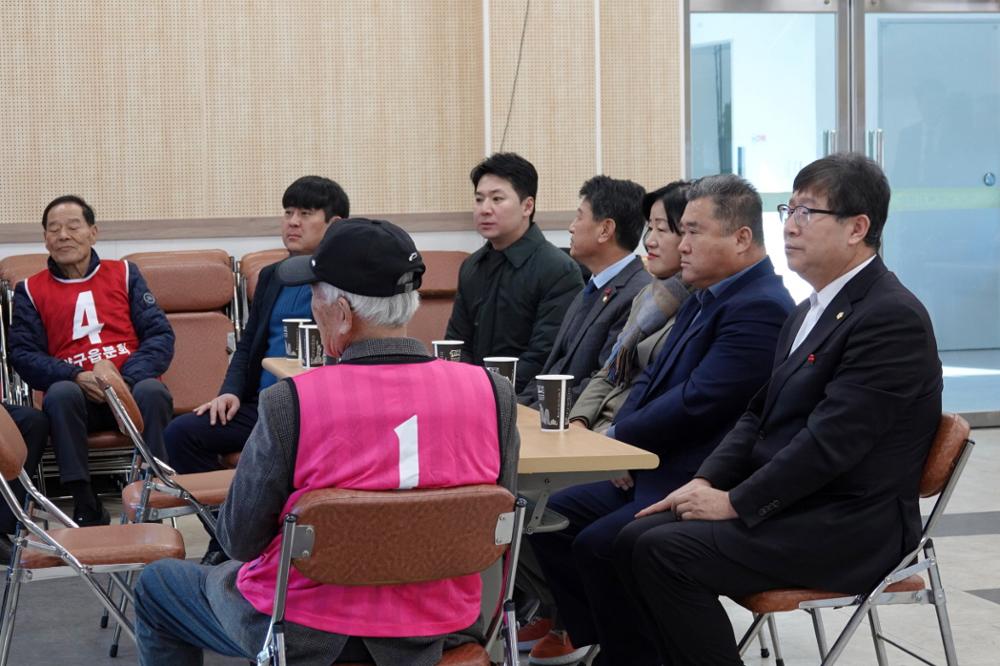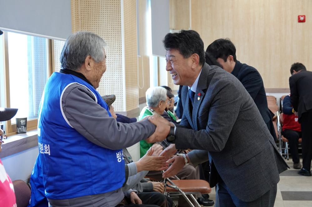 양구군의회 정창수 의장, 신철우 부의장, 조돈준, 김정미, 김선묵, 김기철, 이상철 의원이 2일 양구노인종합복지센터의 노인회에 방문했다.