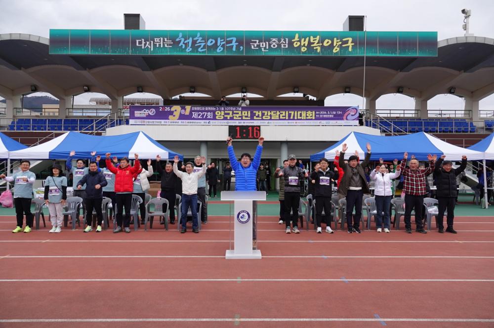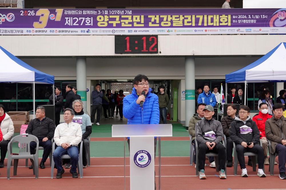 양구군의회 정창수 의장, 신철우 부의장, 조돈준, 김정미, 김선묵, 김기철, 이상철 의원이 1일 제27회 3.1절 양구군민 건강달리기대회에 참석했다.