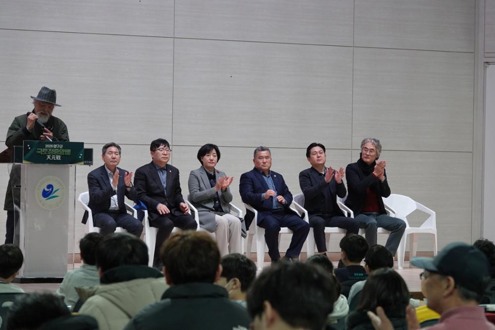 양구군의회 정창수 의장, 신철우 부의장, 조돈준, 김정미, 김기철 의원이 7일, 종합스포츠타운 실내체육관에서 열린 2026년 국토정중앙배 天元전 개회식에 참석했다.