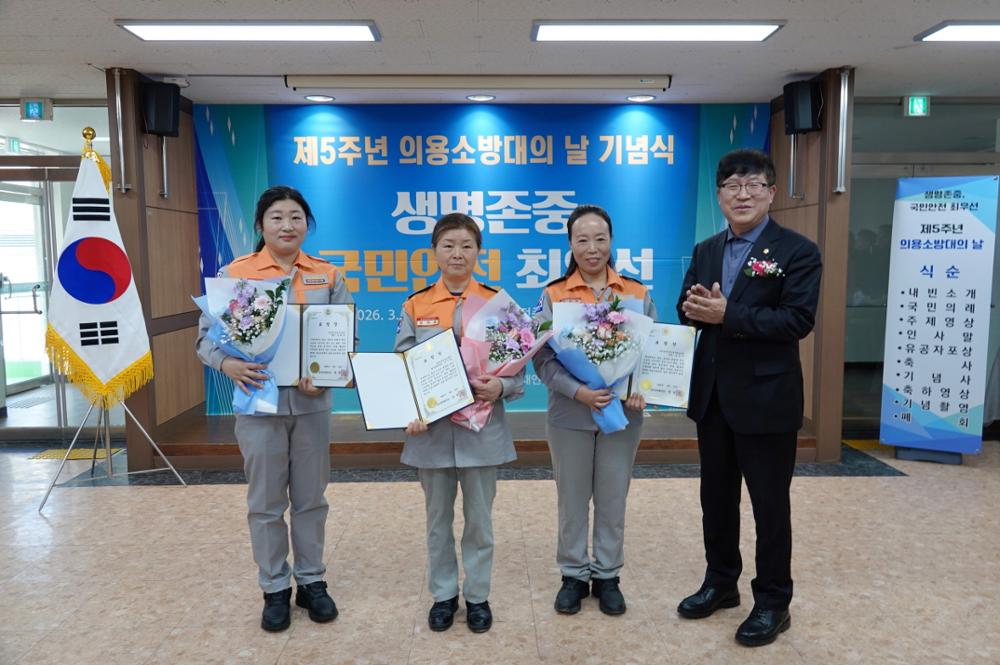 양구군의회 정창수 의장, 신철우 부의장, 조돈준, 김정미, 김선묵, 김기철 의원이 19일, 국토정중앙면 복지회관에서 열린 제5주년 의용소방대의 날 기념행사에 참석했다.