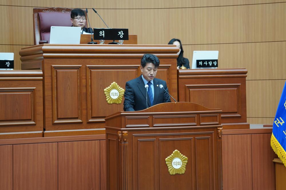 양구군의회 정창수 의장, 신철우 부의장, 조돈준, 김정미, 김선묵, 김기철, 이상철 의원이 20일 본회의장에서 열린 양구군의회 제316회 임시회 제1차 본회의에 참석했다.